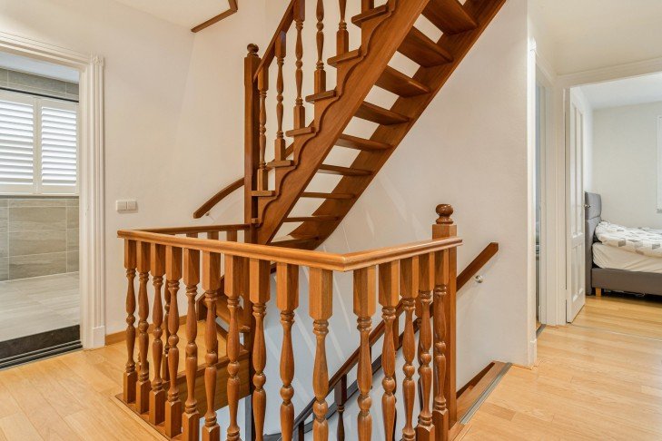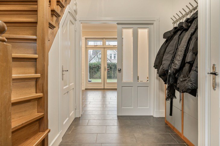 Upon entering, you’ll find a hallway with access to the cloakroom, toilet, basement, living room, and stairs to the first floor.