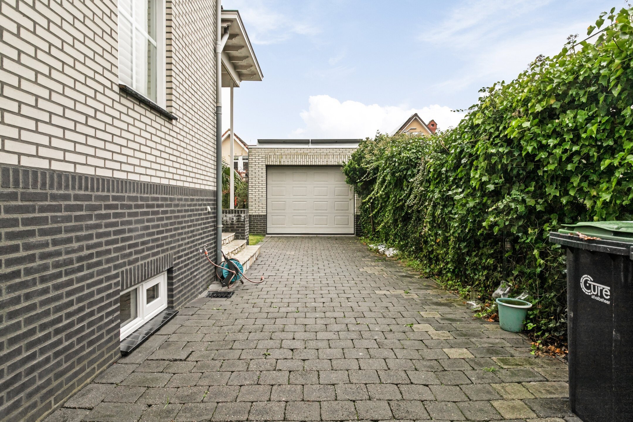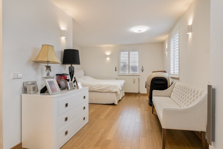Next to the house is a driveway with a gate, leading to the garage with space for one car. Additionally, the house is equipped with two charging stations for electric vehicles.