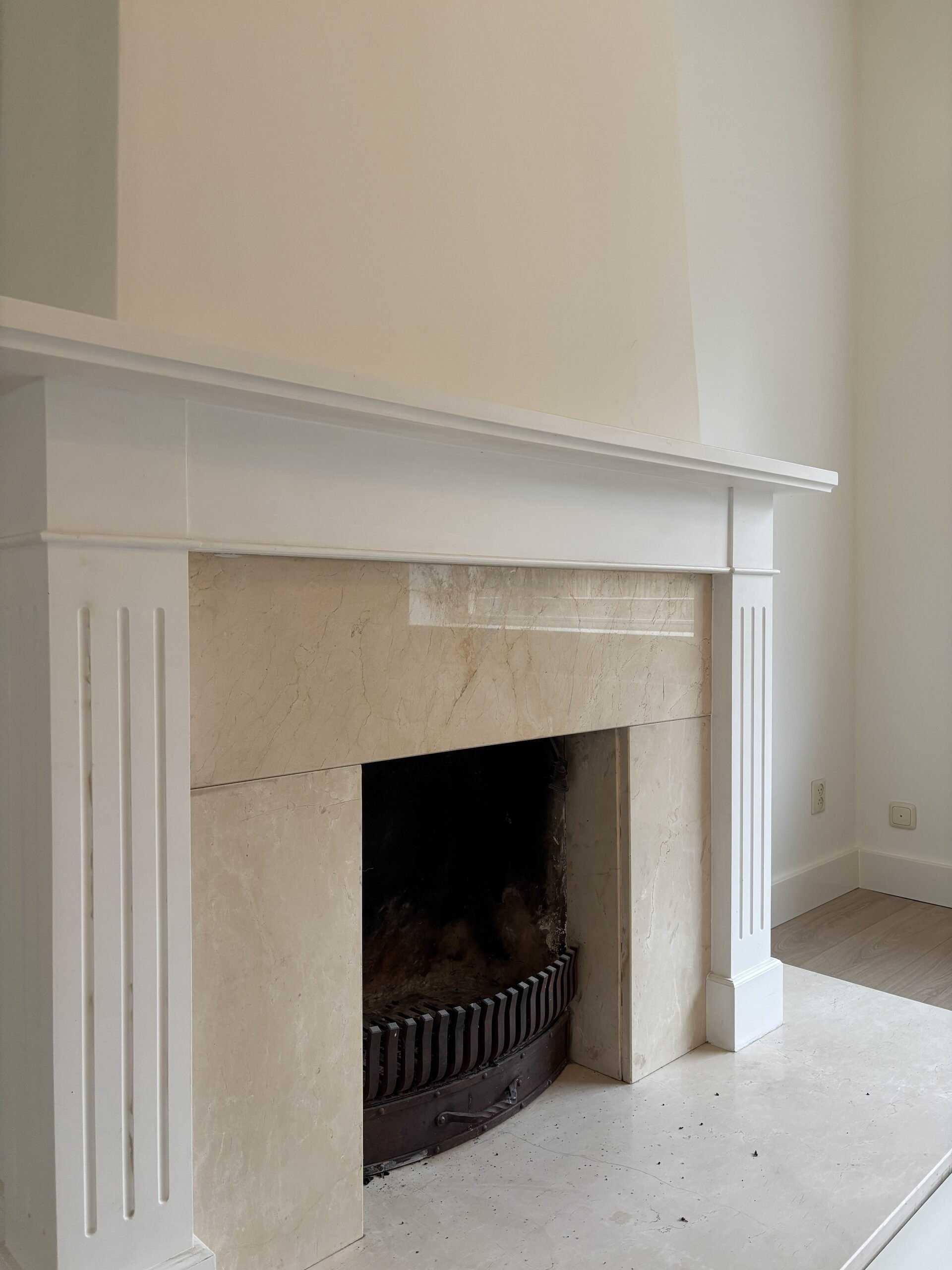 Upon arrival, the original front door with stained glass details immediately reflects the character of the home. Inside, the authentic atmosphere continues with high ceilings, classic panel doors and an elegant fireplace mantel in the living area.