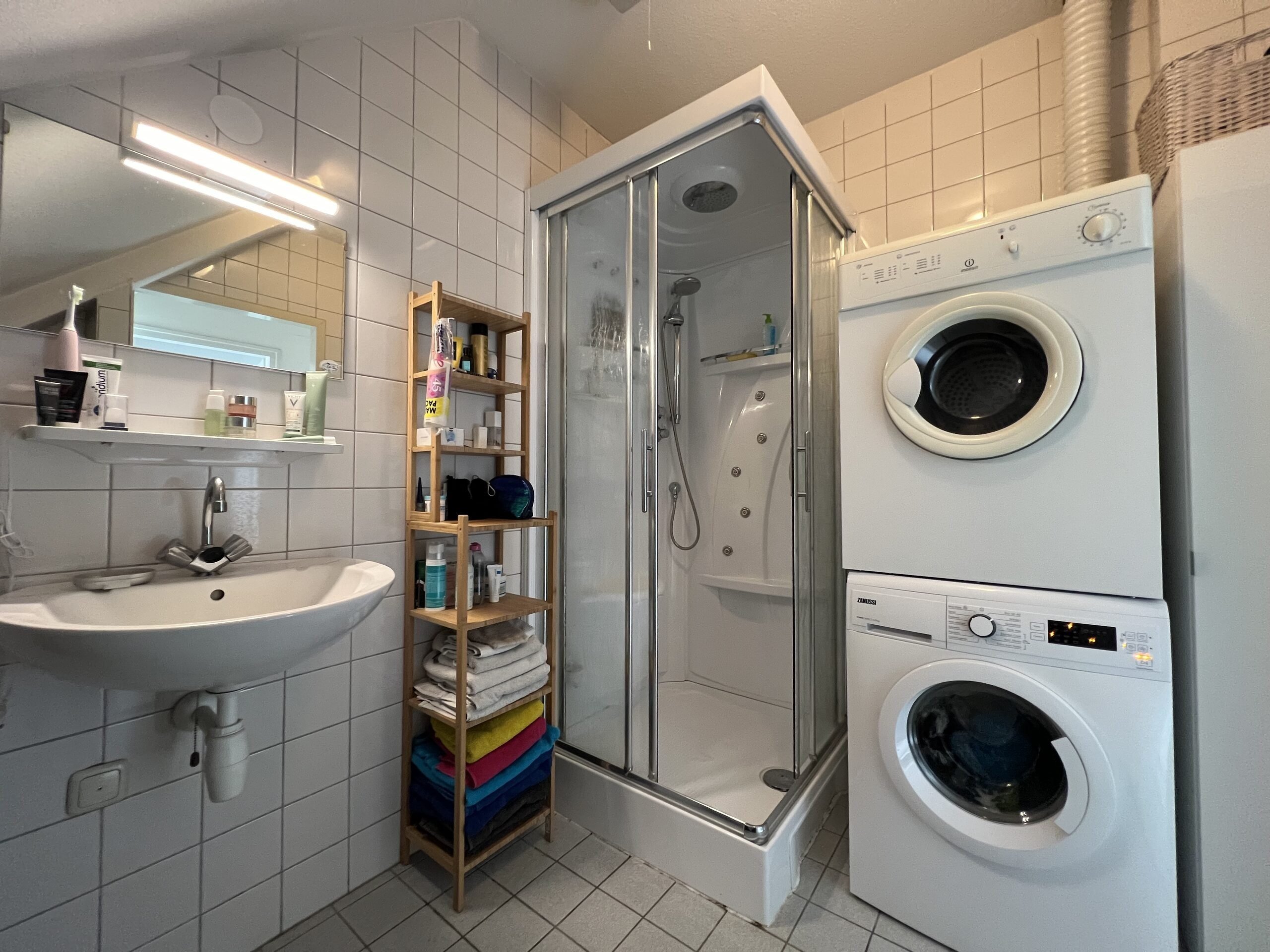 1st Fully tiled bathroom with sink, shower and connections for washing machine and dryer