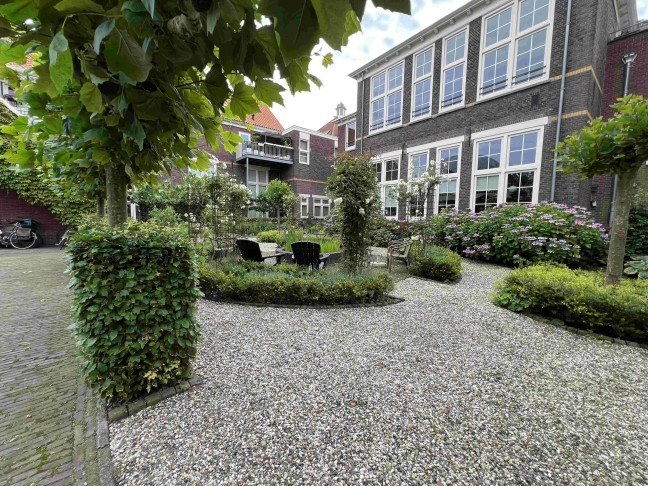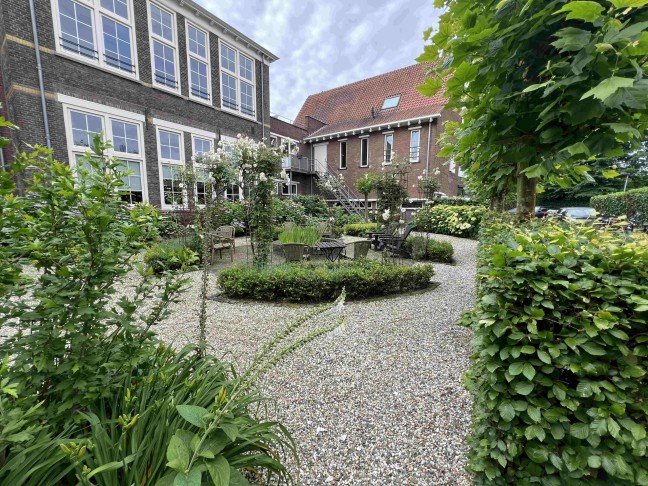 Beautifully renovated apartment in a former school building with beautiful city garden, private parking, storage room and 2 bedrooms. Beautiful city garden with optimal privacy and located in an absolute prime location in “De Bergen” just a stone's throw from Wilhelminaplein and all amenities.