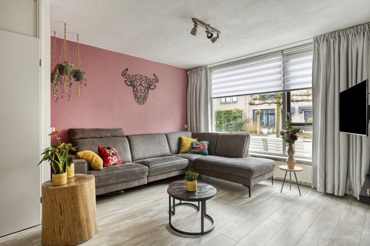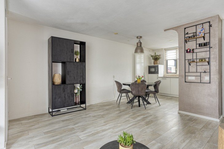 Through the front door, you enter the well-maintained entrance hall, which houses the meter cupboard and a practical cloakroom. From here, you walk into the inviting living room with open kitchen – a delightful, open living space where comfort and coziness come together.