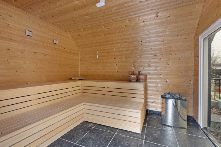 - Large Finnish sauna for ultimate relaxation in your private wellness area.