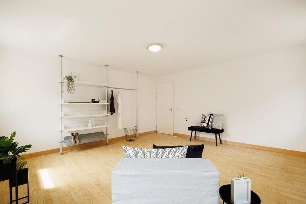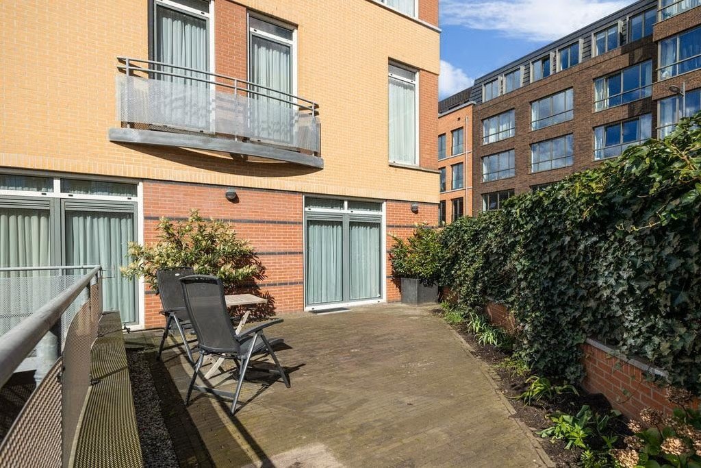 The charming south-facing garden can be reached directly from the living room. It offers a peaceful private retreat where you can dine outdoors or relax in the sun from early spring onwards. Surrounded by greenery, it’s the perfect spot to enjoy quiet moments in the heart of the city.