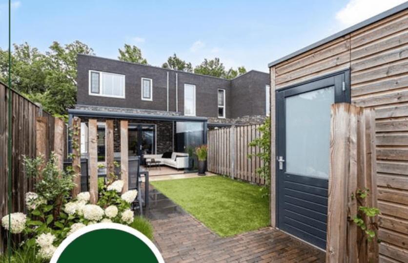 With a living area of approximately 103 m² (including the conservatory) and a plot size of 143 m², the home offers a pleasant living space with a sunny garden, garden shed, and a private parking space directly behind the house.