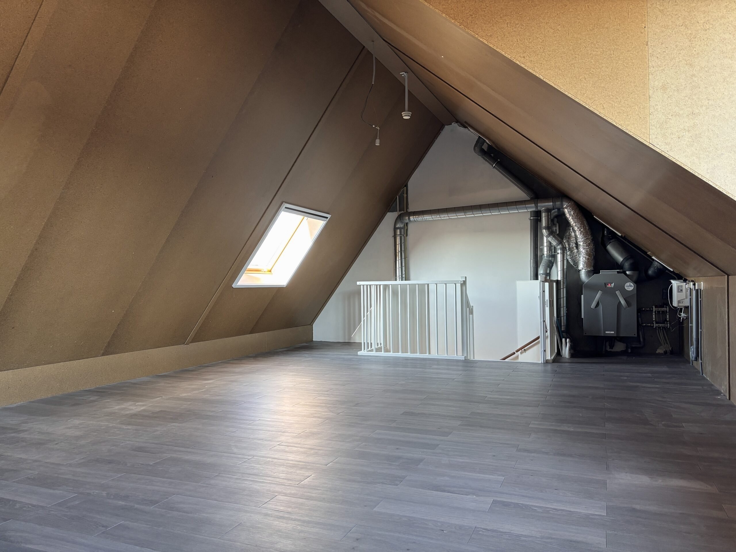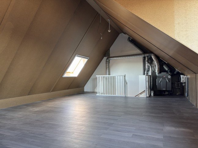 The very spacious attic offers many possibilities and can be used as an additional bedroom, home office, or hobby room. The connections for a washing machine and dryer are also located here.